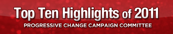 5) Saving Medicare. When Rep. Paul Ryan (R-WI) proposed ending Medicare, we worked with Ryan's Democratic opponent, Rob Zerban, to deliver over 65,000 signatures to Ryan's campaign office, creating local media pressure on Ryan. We also held other House Republicans accountable when they voted for Ryan’s plan. We launched a hard-hitting TV ad against Rep. Charlie Bass (R-NH). Bass now faces huge disapproval numbers and a strong election challenge from progressive favorite Annie Kuster.