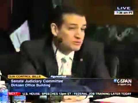The question that I would pose to the senior senator from California is," Cruz said, referring to Feinstein, "Would she deem it consistent with the Bill of Rights for Congress to engage in the same endeavor that we are contemplating doing with the Second Amendment in the context of the First or Fourth Amendment, namely, would she consider it constitutional for Congress to specify that the First Amendment shall apply only to the following books and shall not apply to the books that Congress has deemed outside the protection of the Bill of Rights?"