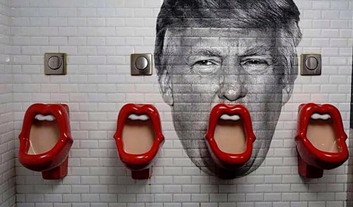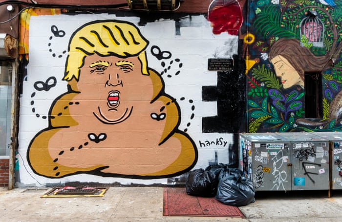 Donald Trump tightened his grip on the Republican race Tuesday night, forcing Marco Rubio to suspend his campaign and further establishing his enduring presence in the 2016 election. His presence is enduring elsewhere – the New York billionaire has commissioned several portraits of himself hanging in buildings he owns. But artists like Hanksy and Illma Gore have also produced less flattering versions of the Donald